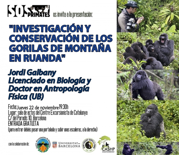SOS Primates os invita a la conferencia “Investigación y Conservación de los gorilas de montaña en Ruanda”.
