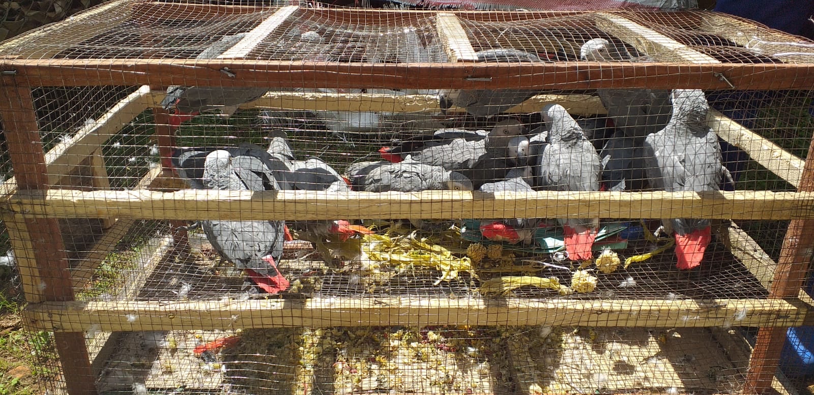 Con los donativos recogidos estás colaborando con la economía de sus familias y con el CRPL, Lwiro Primates, que aloja primates huérfanos y otros animales que provienen de la caza furtiva, como estos loros de cola roja.