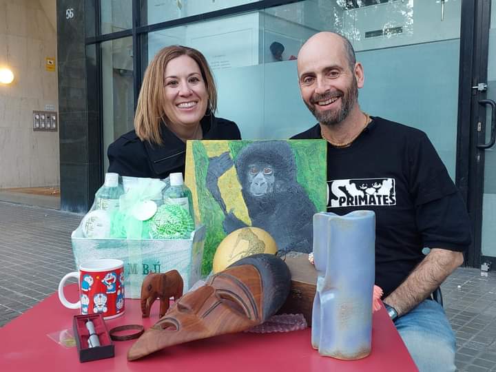 La pasada semana entregamos el premio del sorteo SOSlidario de SOS Primates, que le tocó a Tània P, en la foto con el presidente de la ONG, Raúl Cabrera.