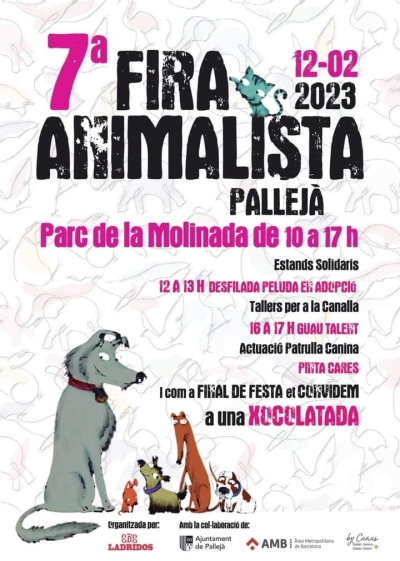 El domingo 12 de febrero estaremos en la 7ª Fira Animalista Pallejà, en el Baix Llobregat (Barcelona) de 10 a 17h, en el Parc de la Molinada donde tendremos nuestro stand solidario.