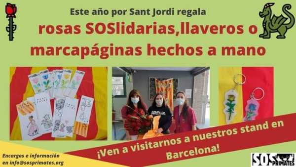 Desde hace 5 años SOS Primates tiene un stand con rosas con el que recoge donativos para los primates del CRPL, Lwiro Primates, como “Kyungu” en la foto.