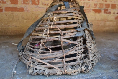 En las fotos, un pequeño huérfano de mono de cola roja, de nombre Kitutu, que llegó al CRPL (ya hace un tiempo) en esta jaula que los furtivos hacen con lianas y ramas, tras ser decomisado por las autoridades, y que tristemente no pudo llegar a la edad adulta.