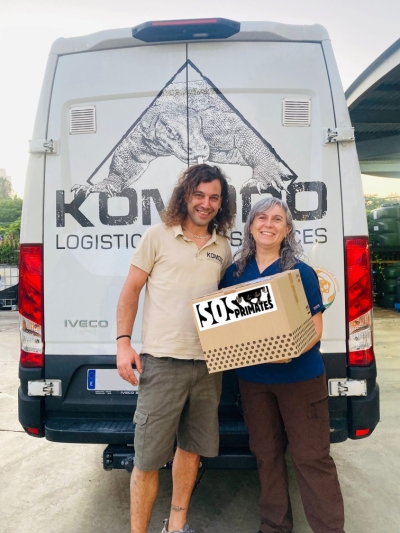En SOS Primates podemos afirmar que casi en la totalidad de los envíos de material entre grupos de ayuda por la geografía de nuestro país contamos con personas, empresas o instituciones solidarias que nos ayudan transportando material para las ferias, cajas o maletas con uniformes u otro equipamiento para los centros de recuperación de primates. En este caso, la empresa Komodo Zoo Services S.L., que se dedica a transportar animales entre instituciones zoológicas con todas las garantías de bienestar animal y respeto por los mismos llevó una caja de SOS Primates desde Barcelona a Madrid. Podéis conocer más sobre ellos en https: www.komodozooservices.com