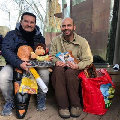 The prizes that were drawn on the 23rd of December are already with their winner. The winner was A.Fdez who gave the prize to S.Cadenas, who also participated in the draw. The raffles that we organise at SOS Primates help us to get donations for the CRPL, Lwiro Primates, so that we can do our bit for the feeding of the orphans of bush meat consumption, like “Mubaki”, in the photo.