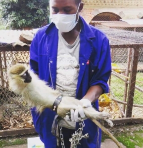 The donations gathered are destined for the nourishment expenses of the orphan primates that live in the CRPL, Lwiro Primates, in the DRCongo, like ‘Eddy’, in the photo, that has been tied to a chain for so long that bruises were produced on his waist.