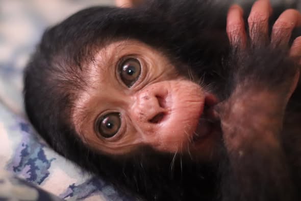Demande de SOS Primates aux Rois mages: Si, dans l’une de vos maisons, vous laissez à notre nom de grands récipients hermétiques (avec couvercle) pour avoir notre matériel dans la zone de stockage que nous partageons avec d’autres entités, comme vous nous le demandez, veuillez nous en informer. Tout ce qui nous aide à mieux travailler pour les différents centres de primates que nous aidons, parmi lesquels le CRPL, Lwiro Primates, qui accueille des primates orphelins comme Tony, sur la photo.